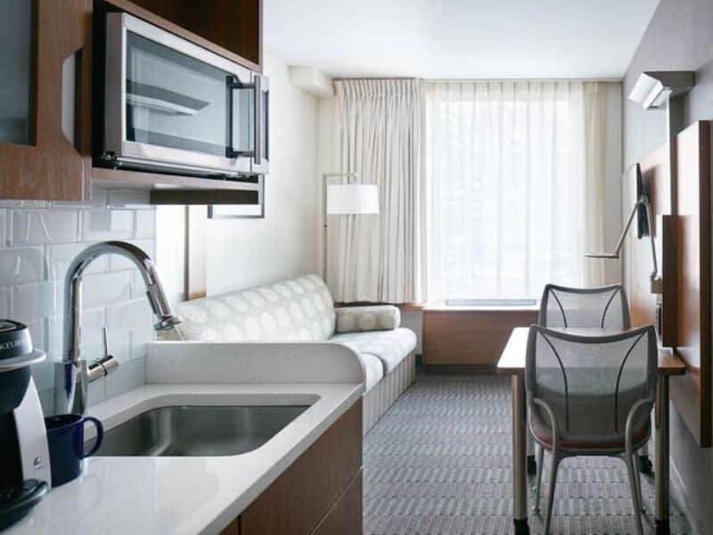 Our stylish rooms are designed for your comfort, featuring complimentary Wi-Fi, smart TVs, and convenient Keurig coffeemakers. Some rooms even boast kitchenettes and stunning skyline views! For those seeking extra space, our suites offer cozy living rooms, while our apartments come with full kitchens.