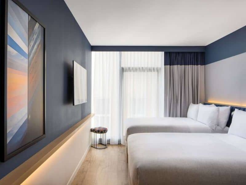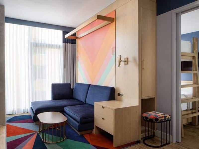 The modern rooms, some with wall beds, are equipped with Wi-Fi, smart TVs, and minifridges, with many boasting stunning city views, and some even feature bunk beds. Room service is a wonderful convenience.